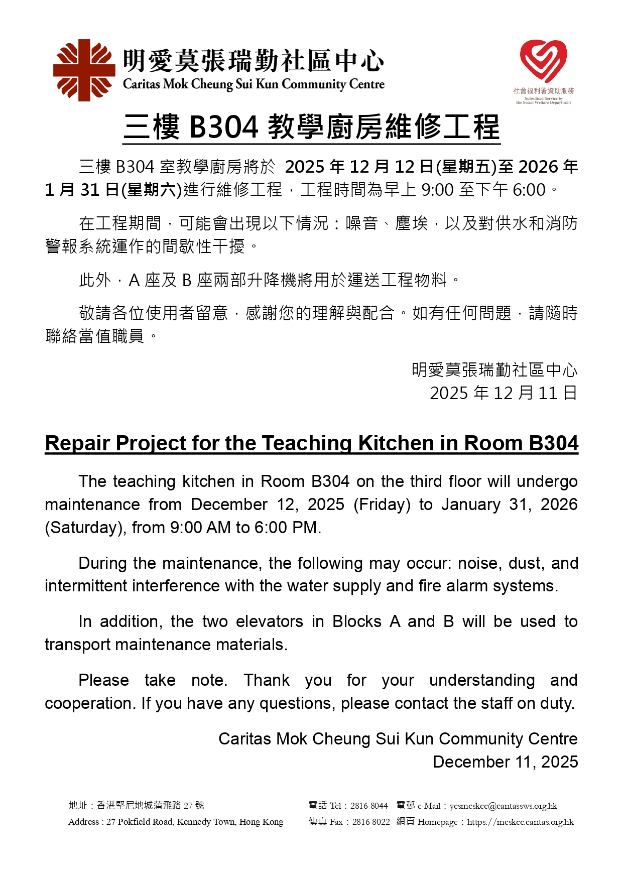 三樓B304教學廚房維修工程(11/12/2025)